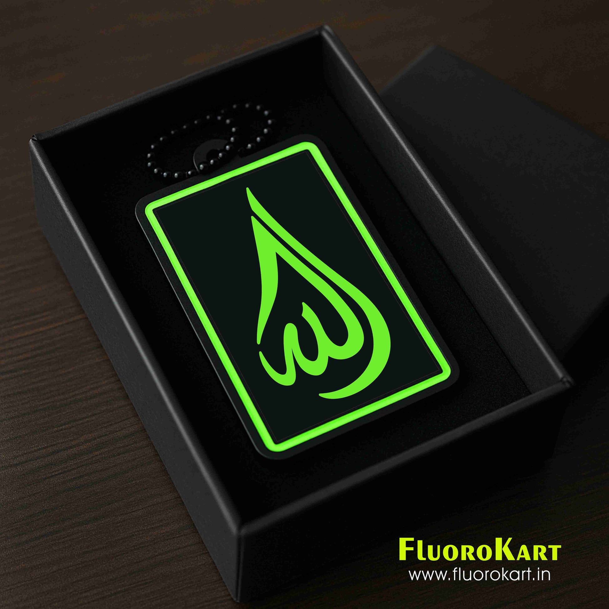 Carry a powerful reminder of faith and protection wherever you drive with the Allah Symbol Car Hanging Charm by FluoroKart. Made from radiant neon green fluorescent acrylic and backed with a sleek black acrylic base, this charm is precision-cut to reflect both spirituality and style.