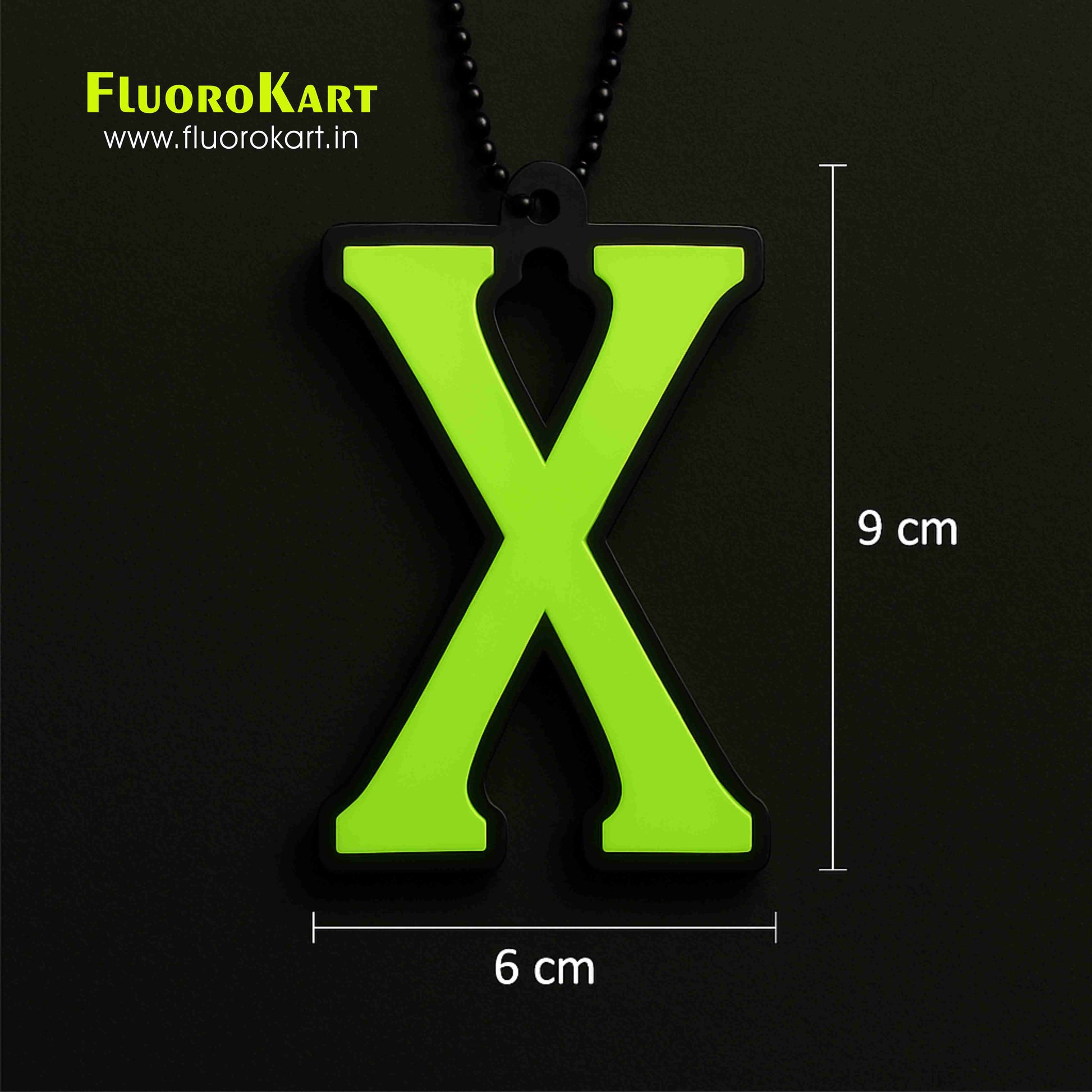 Make a bold and mysterious statement with the X Symbol Car Hanging Charm from FluoroKart. Crafted from vivid neon green fluorescent acrylic and layered on a solid black acrylic base, this double-sided charm is designed for those who love edgy, modern aesthetics.